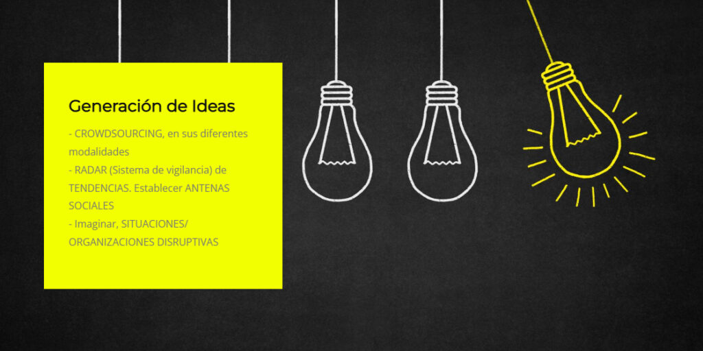 Que, siguiendo la senda de la Innovación Abierta, abre el proceso de su elaboración y ejecución, tanto al personal de la organización como a diversos expertos externos. Se muestran a continuación algunos de los elementos que se usan en las tres fases en que se suele desarrollar ésta.